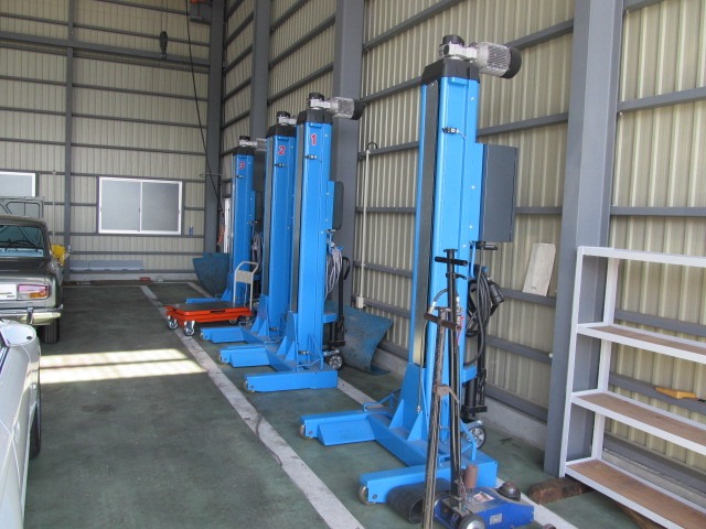 第二工場は、大型トラック5台を収納することが可能で、九州地区では数少ないヨーロッパ製移動式リフトや天井クレーンなどの設備機器の他、安全ワイヤーなどスタッフの安全面に配慮した設備もございます。